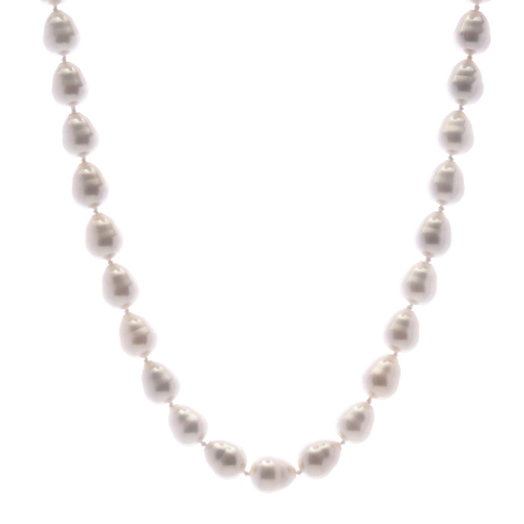 10x12mm white baroque pearl necklace with silver cz ball clasp